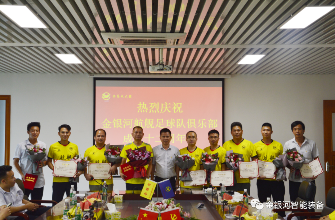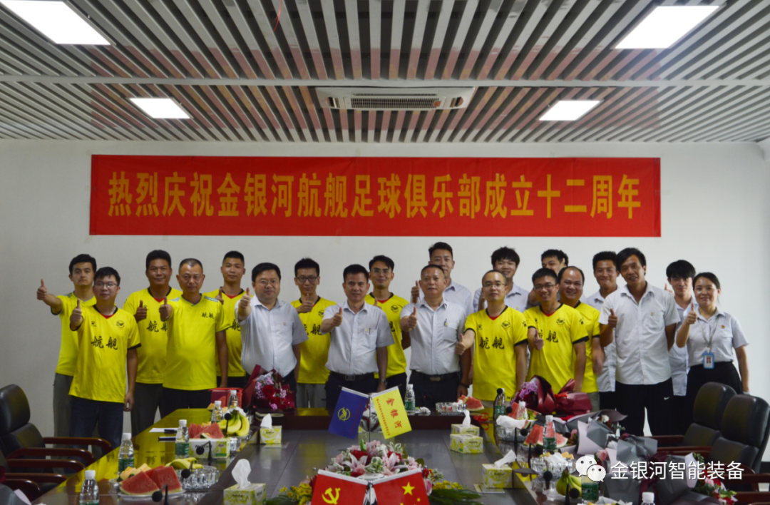 盛夏如火,激情飛揚(yáng)。近日,金銀河航艦足球俱樂部成立十二周年慶典活動(dòng)在金銀河集團(tuán)B區(qū)大樓舉行。佛山市金銀河智能裝備股份有限公司執(zhí)行總裁黃少清、供應(yīng)鏈總裁熊仁峰、鋰電裝備總經(jīng)理李小云、工程售后總監(jiān)吳曙光、人力資源總監(jiān)兼工會(huì)主席李紅英及其他俱樂部成員參加了活動(dòng)。據(jù)悉,本次活動(dòng)展現(xiàn)了十二年來堅(jiān)守初心使命、服務(wù)集團(tuán)發(fā)展的責(zé)任擔(dān)當(dāng)和員工團(tuán)結(jié)一心、攻堅(jiān)克難的精神面貌。活動(dòng)開始前,隊(duì)員們共同分享了十二周年的喜悅與精彩。十二年的拼搏、十二年的發(fā)展都濃縮在一張張照片中,熟悉或陌生的面孔,一次次新的突破,讓我們重新回顧了一步步走來的歷程。