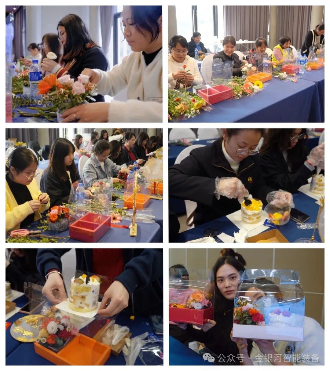在創(chuàng)意蛋糕花盒的制作環(huán)節(jié)中,女職工們充分展現(xiàn)了她們非凡的審美能力和精湛的手藝。她們巧妙地運(yùn)用靈巧的雙手,將一朵朵美麗的鮮花精心插制,再與蛋糕完美結(jié)合,創(chuàng)作出一款款既美味可口又充滿藝術(shù)美感的蛋糕花盒。