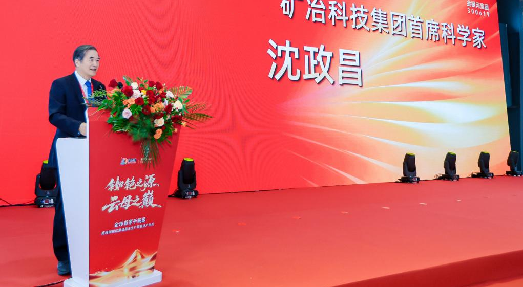 沈政昌先生在致辭中高度評價了金德鋰項目的成果,他表示金德鋰項目成功達產標志著我國在戰略稀貴金屬領域實現了重要跨越。他呼吁行業持續加大研發投入,深化"產學研用金"融合,推動產業向更高層次發展。