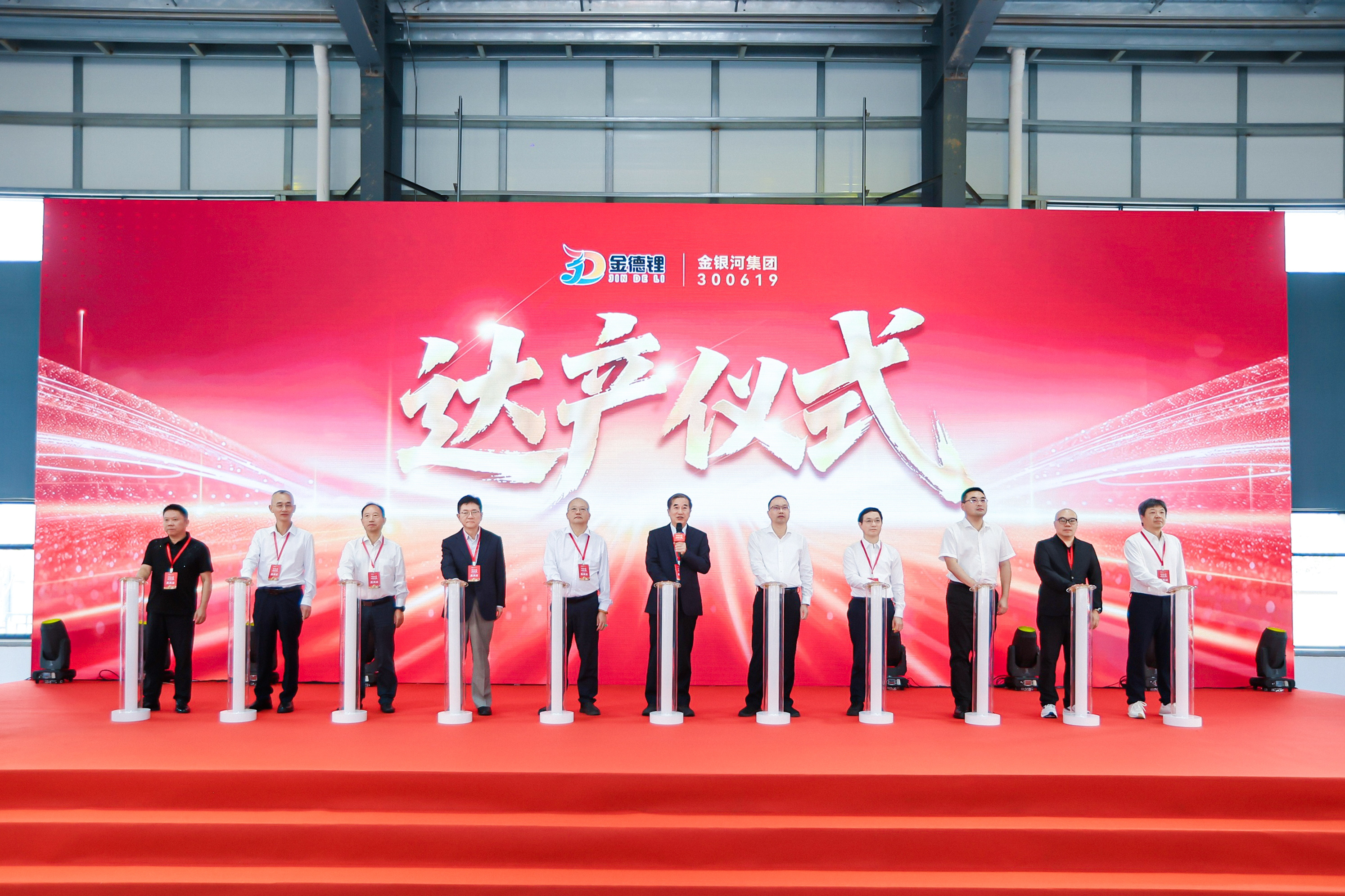 在與會者的共同矚目下,十一位重要見證者共同啟動“能量柱”,宣布江西金德鋰千噸級高純銣銫鹽產線成功達產。這一儀式標志著金德鋰在戰略稀貴金屬領域的新征程正式開啟。