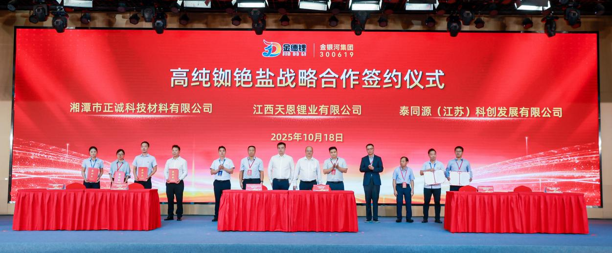2025年10月18日,江西金德鋰新能源科技有限公司在南昌市安義縣生產基地內隆重舉行了“全球首家千噸級高純銣銫鹽重結晶法生產項目達產儀式”