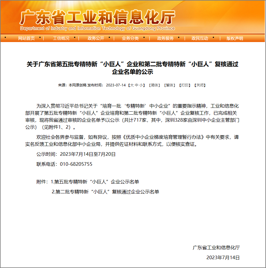 近日,廣東省工業(yè)和信息化廳公示了第五批國家專精特新“小巨人”企業(yè)名單,佛山市金銀河智能裝備股份有限公司位列其中,成功入選。