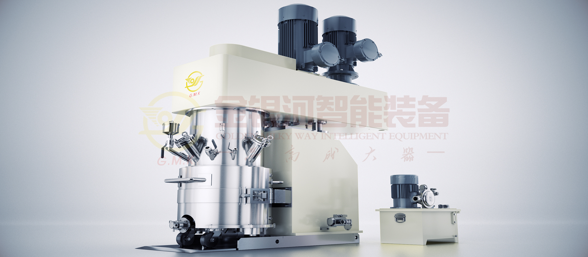 行星動力混合機是一種無死點的動力混合、分散設備。采用獨特攪拌機構,下料桶固定不動,分散盤、攪拌槳實現既公轉又自轉的行星運動。使物料作復雜運動,受到強烈的剪切和捏合,物料得以充分的分散和混合,不會出現混合死點。在釜內設計了一個自動刮壁機構,將附著在釜壁上的物料刮下繼續混合。設備密封獨特,可加壓或抽真空去氣泡等。廣泛的應用于化工、輕工、食品、制藥、建材、農藥等行業。
