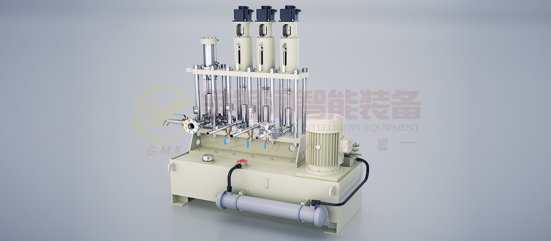 靜態混合機是由靜態混合器、液壓系統、定量計量系統、閥體、集成電控系統、氣控系統、機架等部件組成,其中靜態混合器是整套設備的核心。