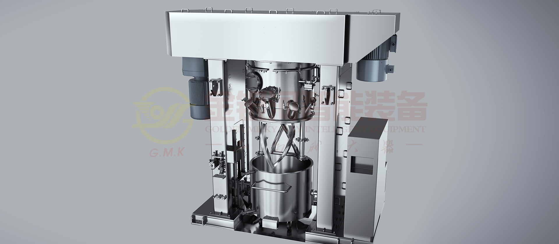 雙行星動力混合機是結合了傳統雙行星攪拌機和高速分散機的原理,組成的一種高效的新機型,目前在新能源領域有著廣泛的應用。 我司針對鋰電池、電容漿料特性,在原行星式動力攪拌機的基礎上,開發了具有高轉速,大扭矩的增強型動力混合機,適用于干混、濕混工藝制備鋰電正負極漿料。在設計過程中,我司充分考慮了攪拌器的合理轉速、攪拌功率、分散線速度及合理的麻花槳形,減少高粘稠物料的阻力和桶內湍流強度的分布等因素,設計出更高效、更穩定的雙行星動力混合機,可處理高黏度的漿料。