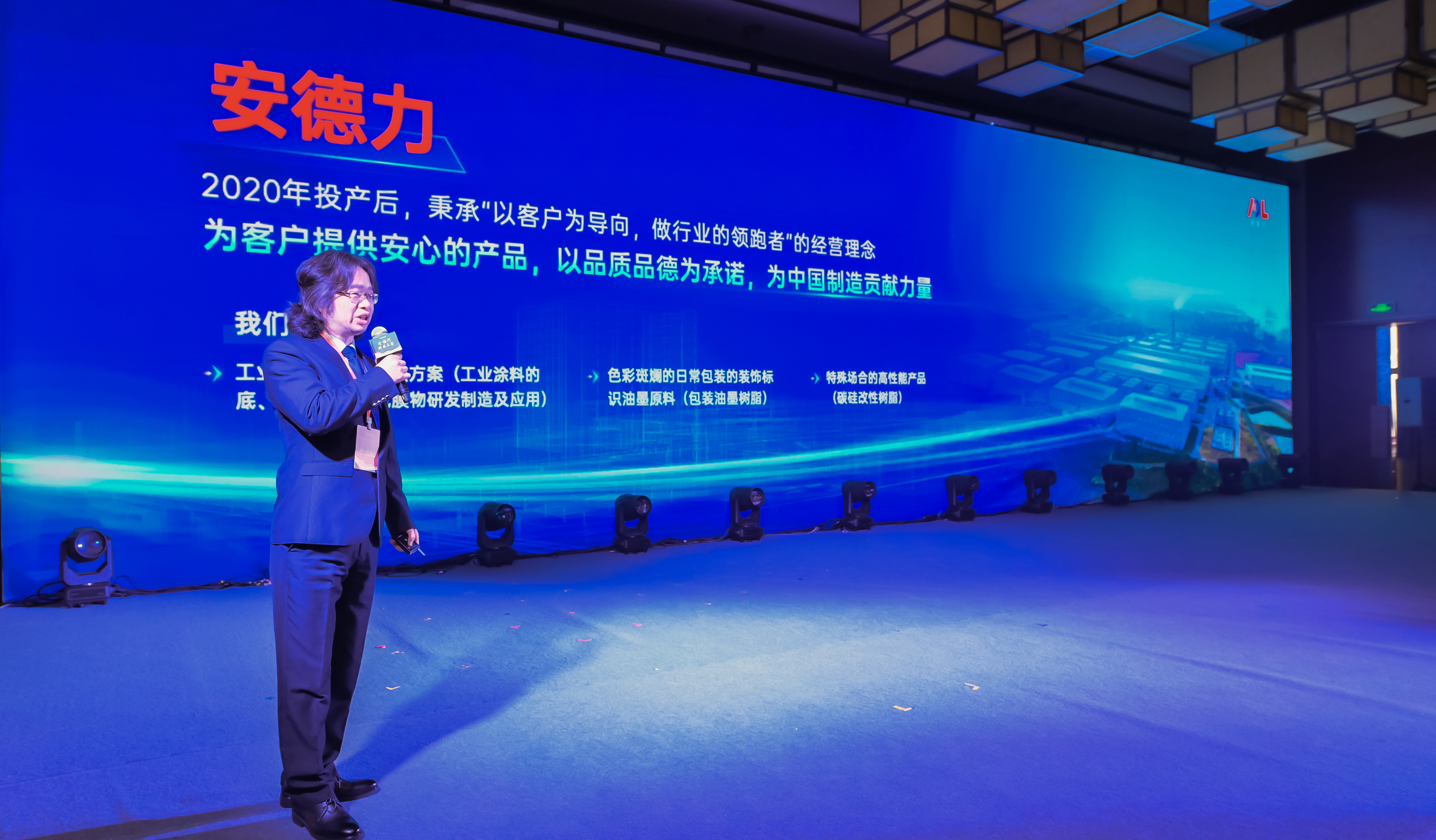 江西安德力高新科技有限公司副總經理王立峰先生,介紹了安德力在環保油墨樹脂、水性工業涂料樹脂、碳硅改性材料的性能及應用,為多個行業提供了綠色、高效的應用解決方案。